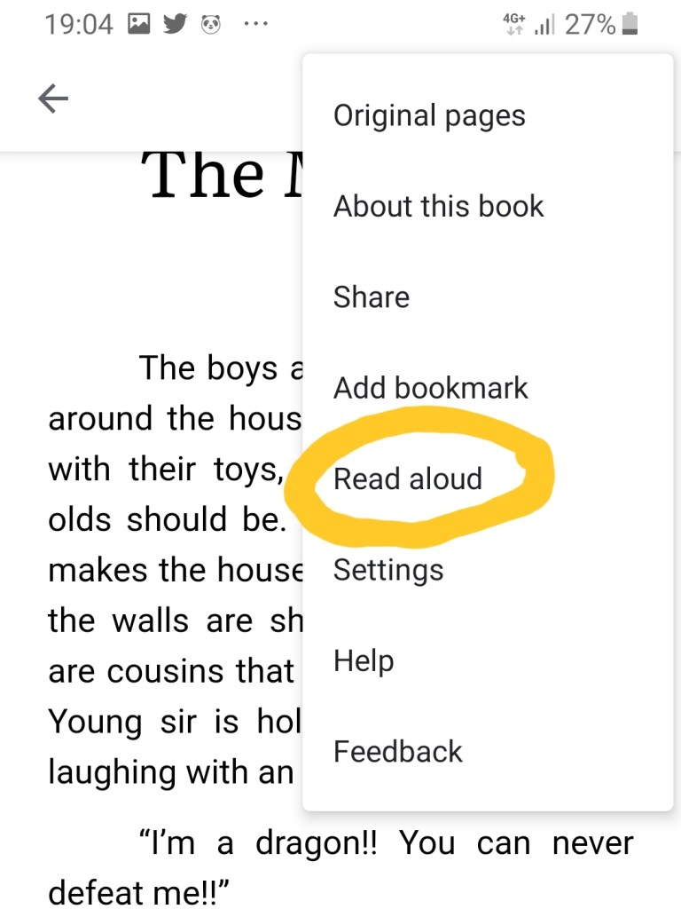 Then, navigate to the upper right corner and tap on the 3 dots option button, and choose ‘Read Aloud’, simple as that!